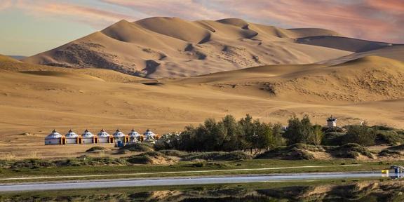 響沙灣位于庫布齊沙漠之中,是中國最大的沙漠旅游勝地之一,游客可以感受到沙漠的廣袤和壯美,當(dāng)沙子被踩踏時(shí),會發(fā)出“沙沙”的聲響,因此得名響沙灣,這里還有駱駝隊(duì)、滑沙等豐富的沙漠活動,讓游客充分體驗(yàn)沙漠的樂趣。