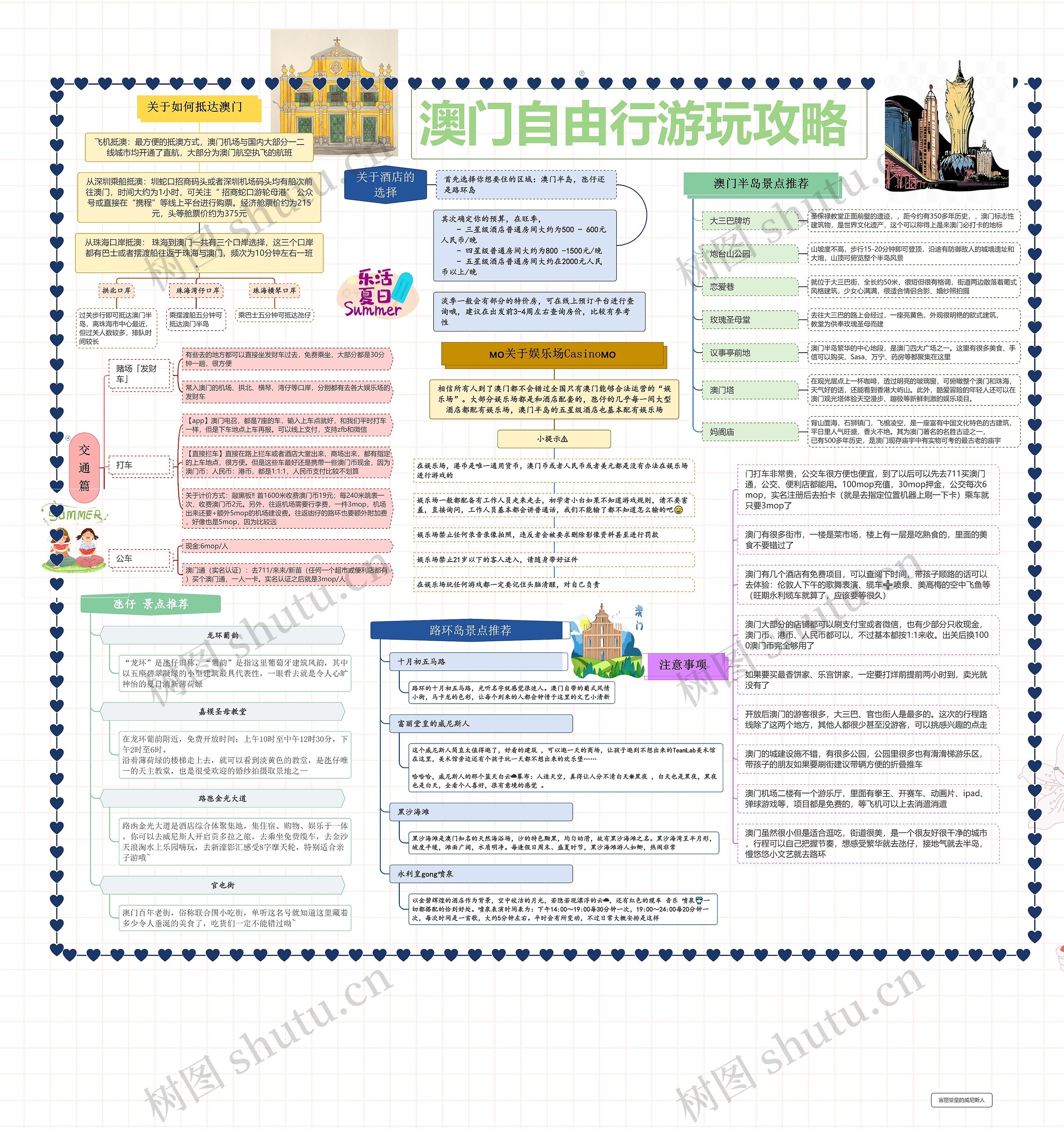 澳門:大三巴牌坊、澳門塔、葡京賭場等,在澳門,您可以品嘗到葡式蛋撻等特色美食,澳門的夜景也非常迷人。